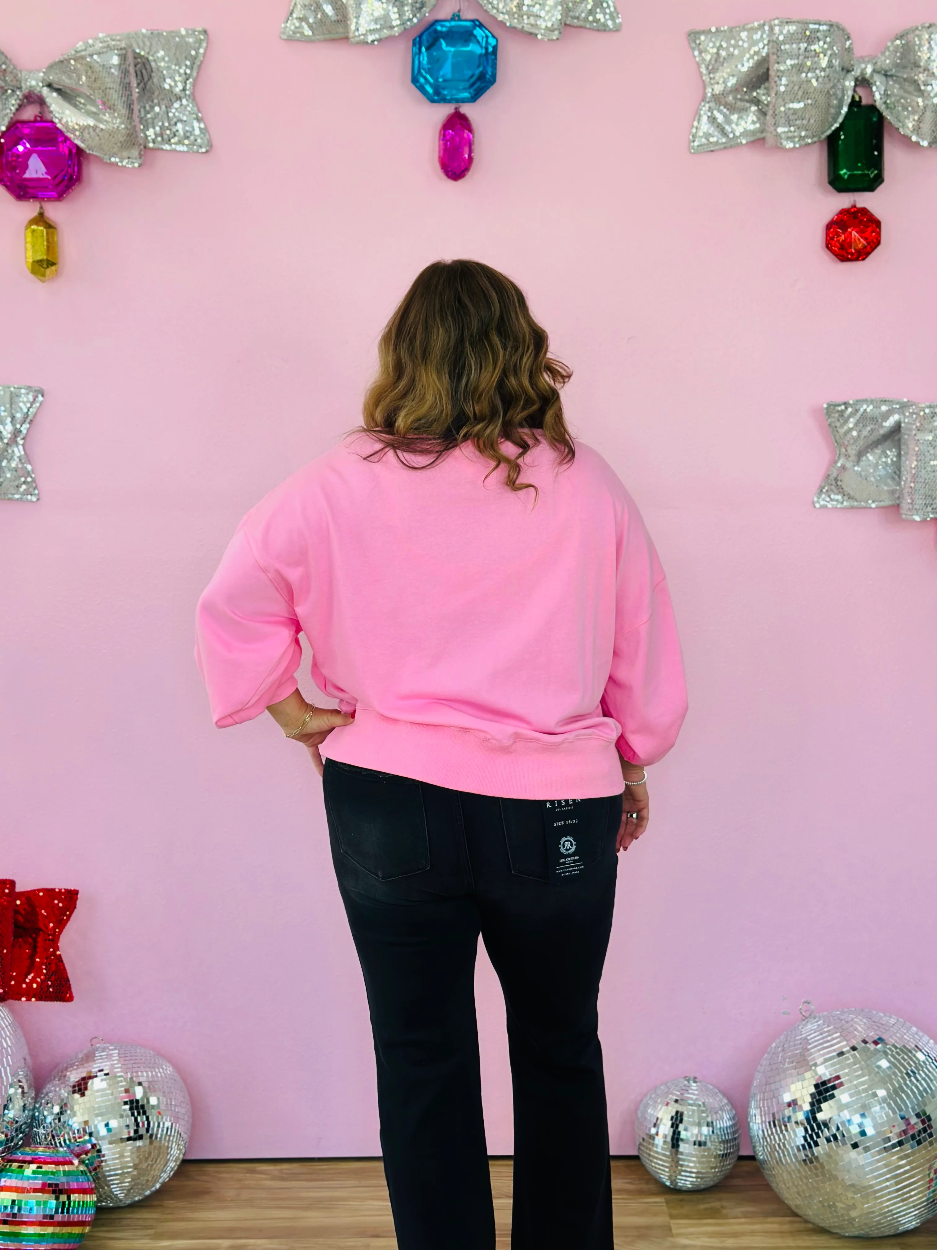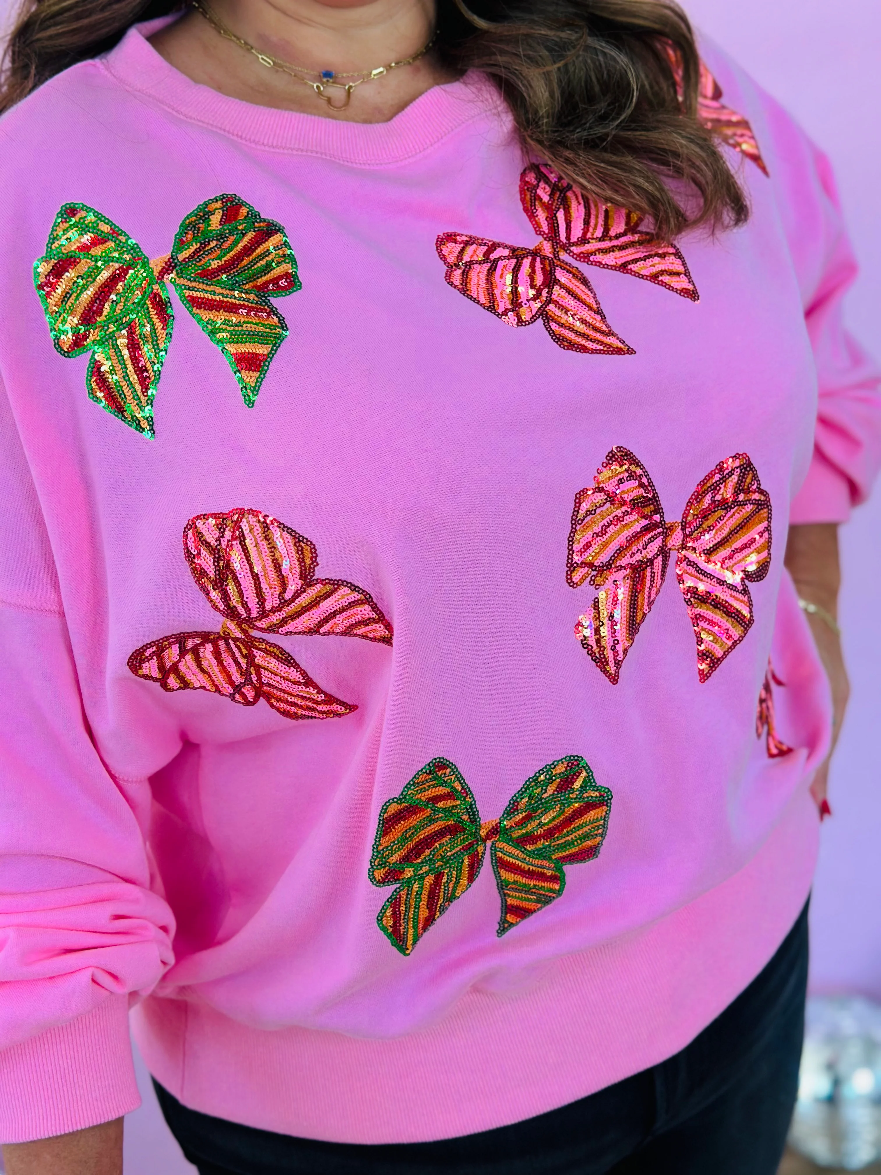 FESTIVE SEQUIN BOW SWEATSHIRT-PINK
