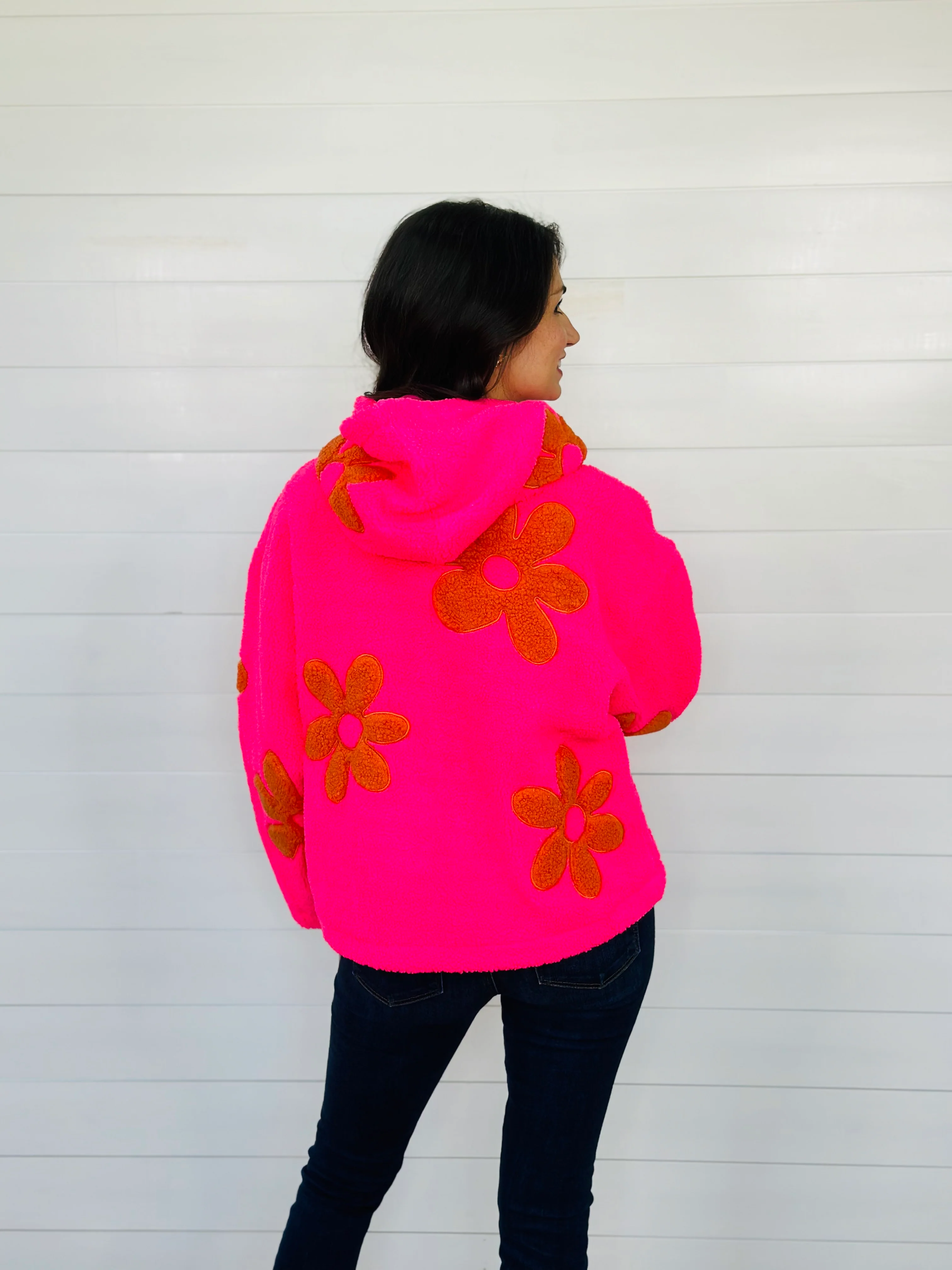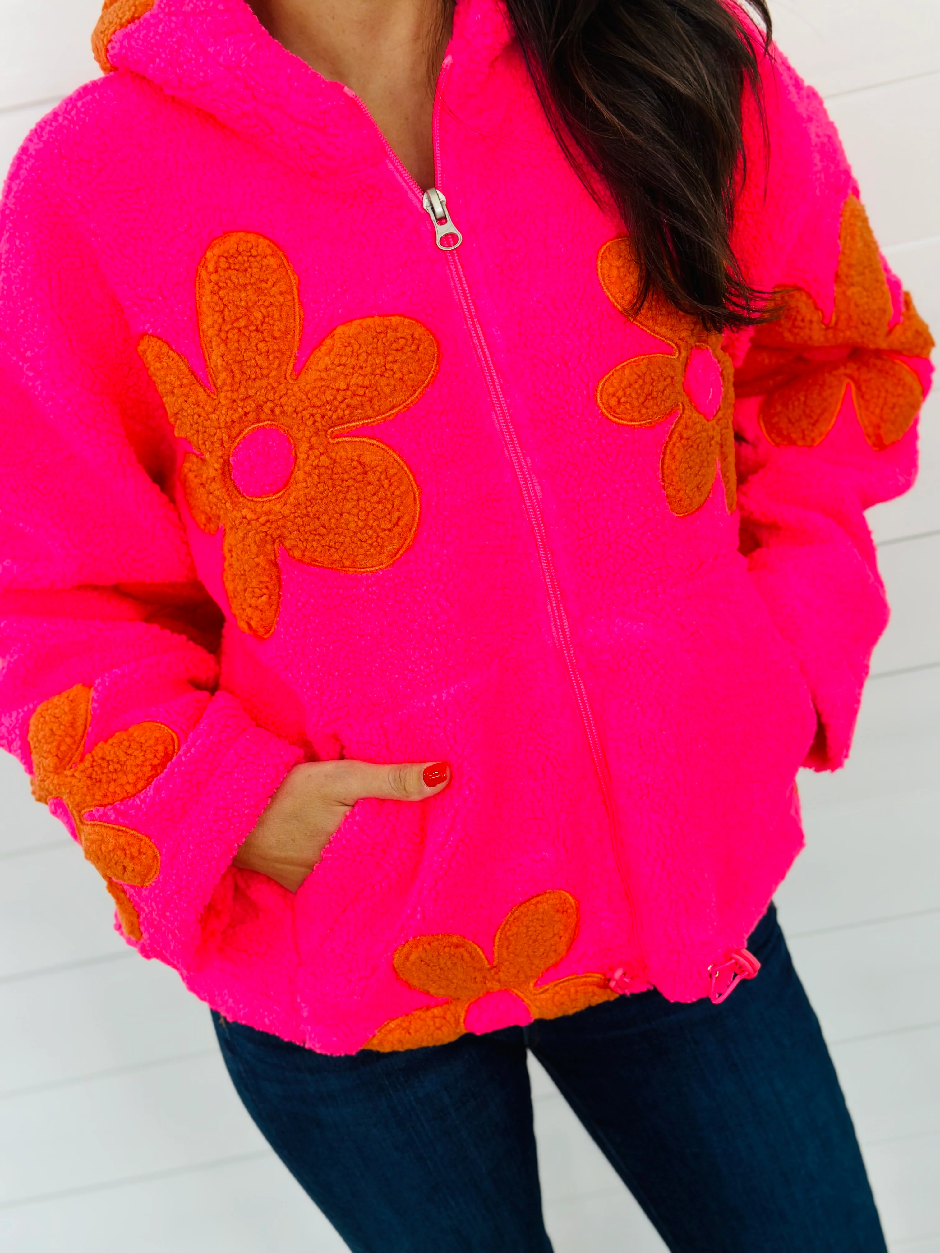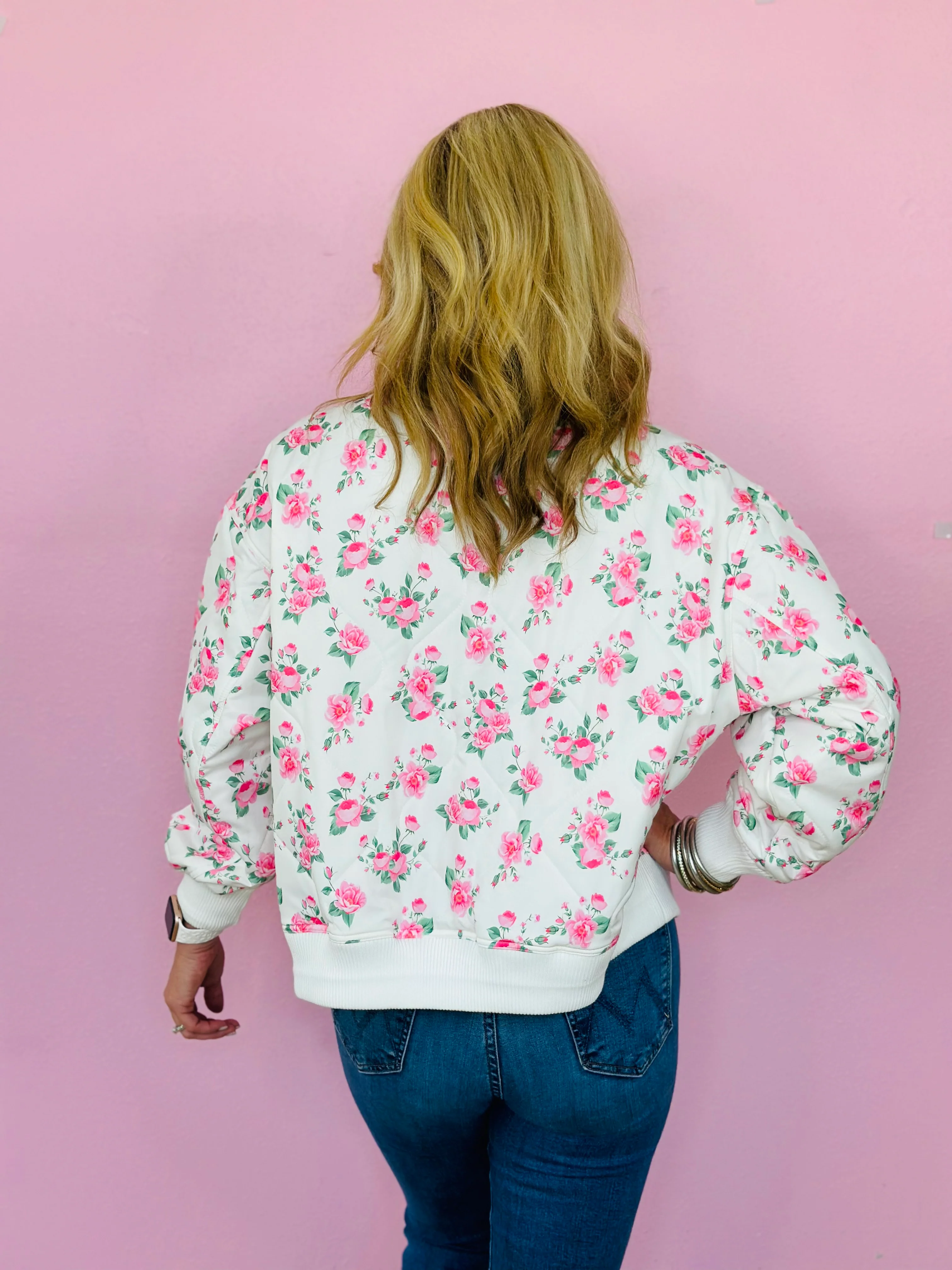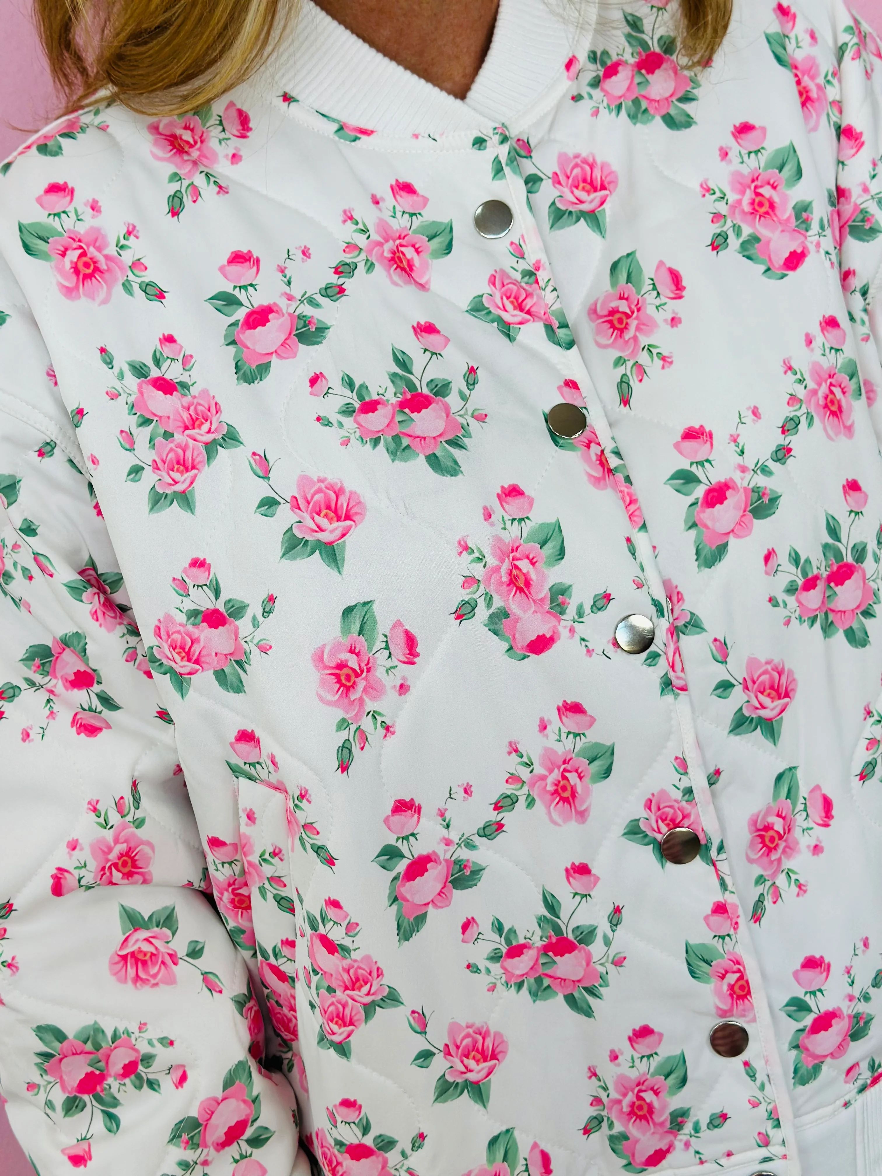 PUFF FLORAL BARN JACKET-FUCHSIA