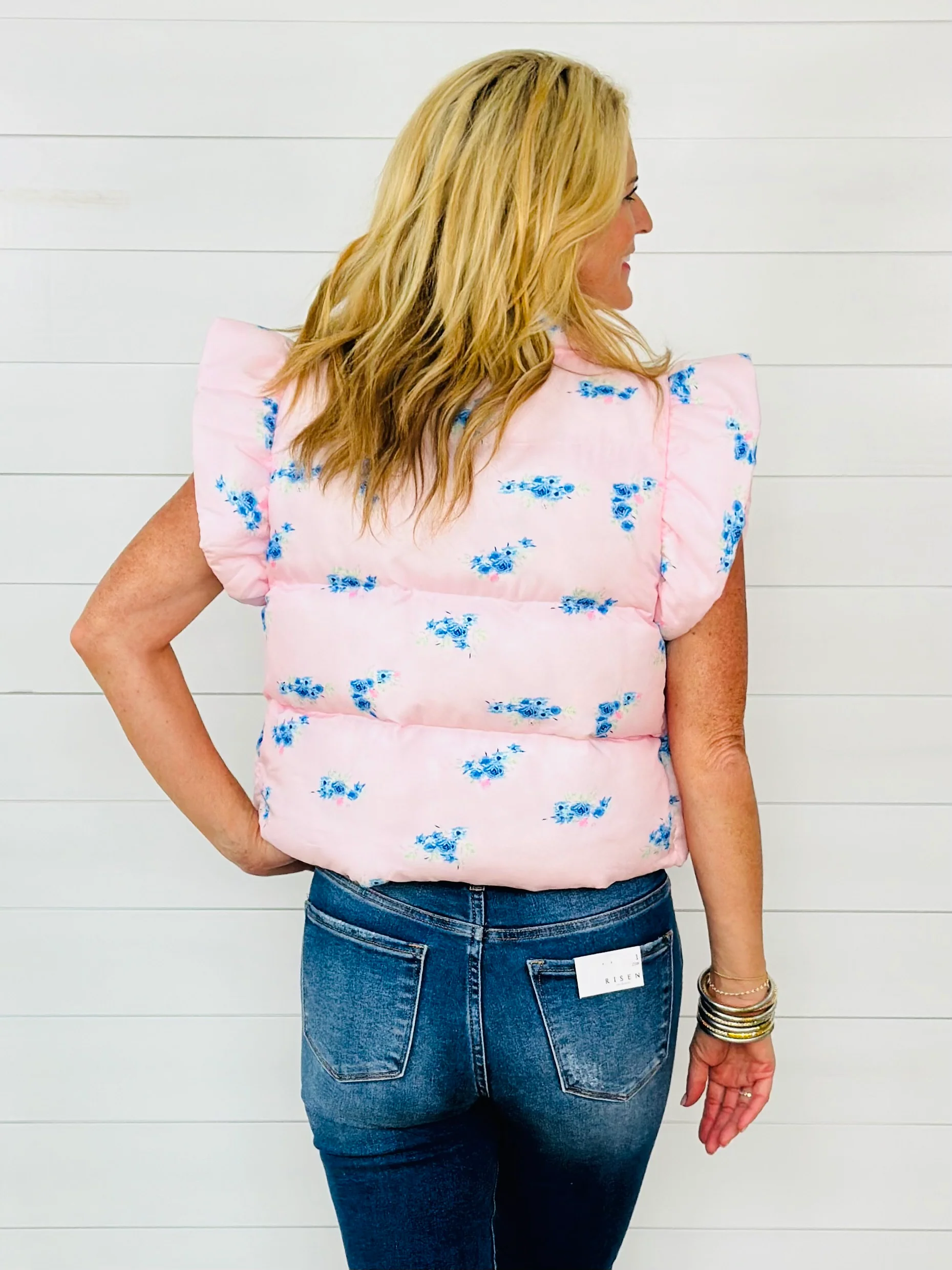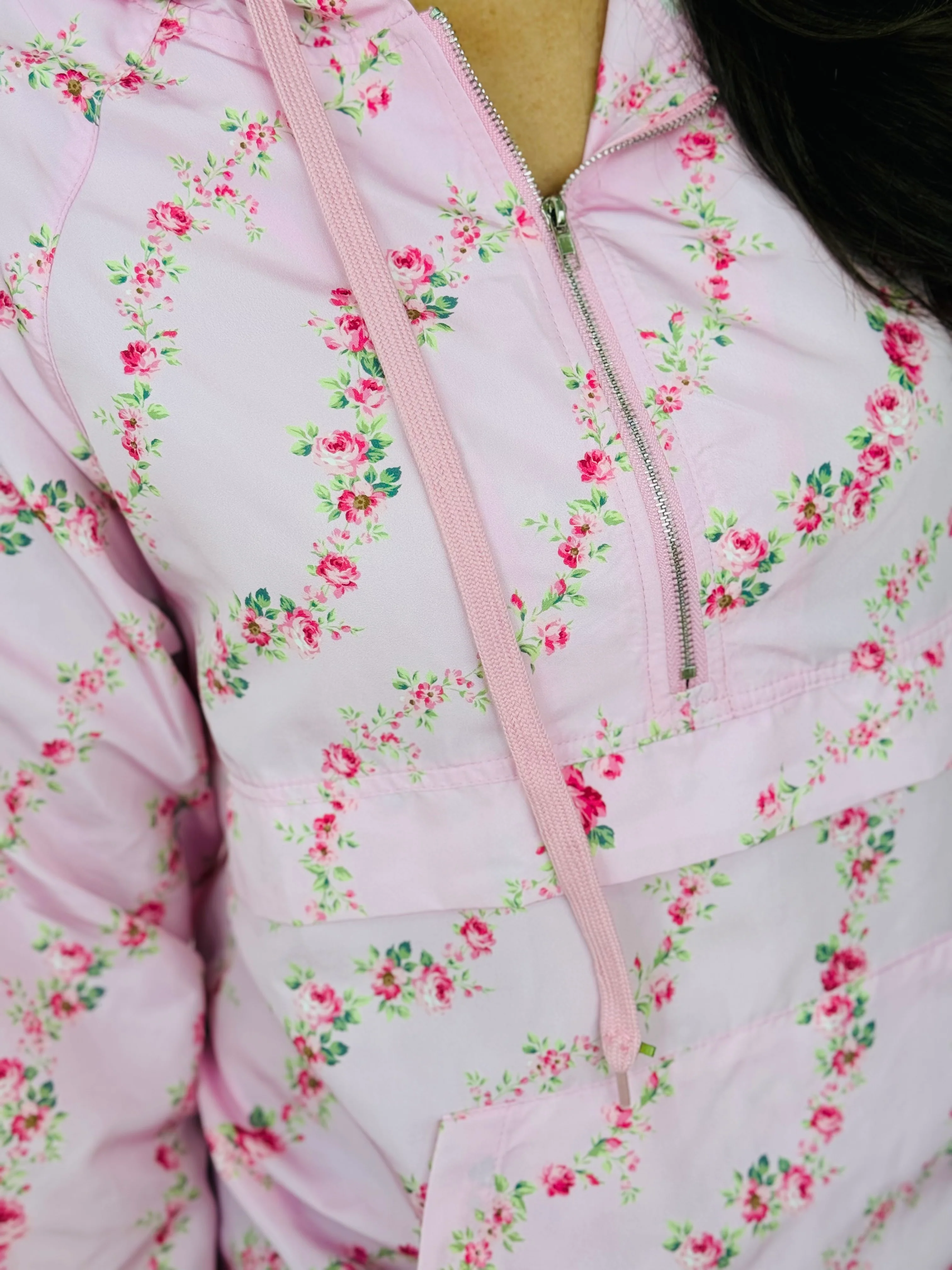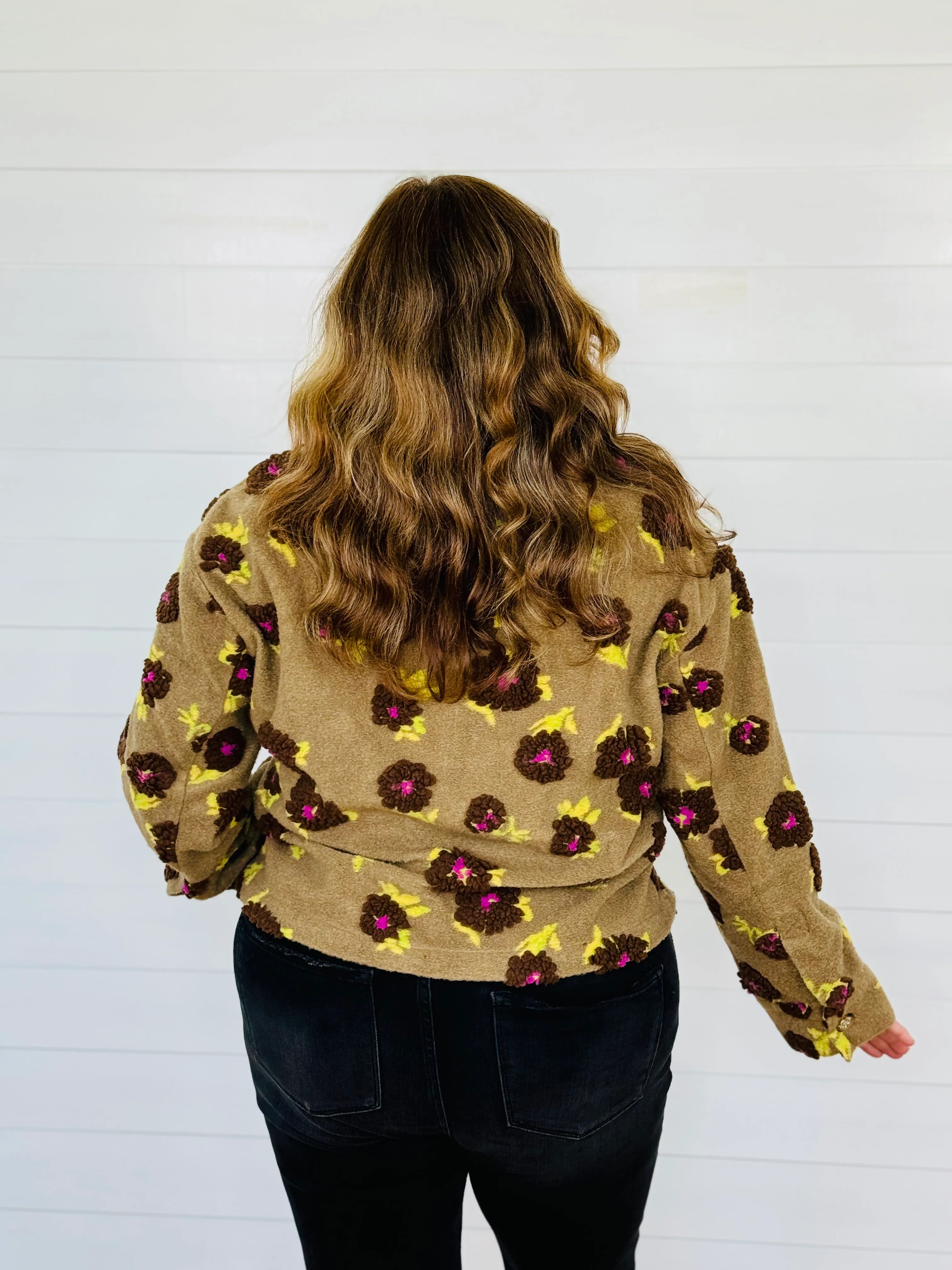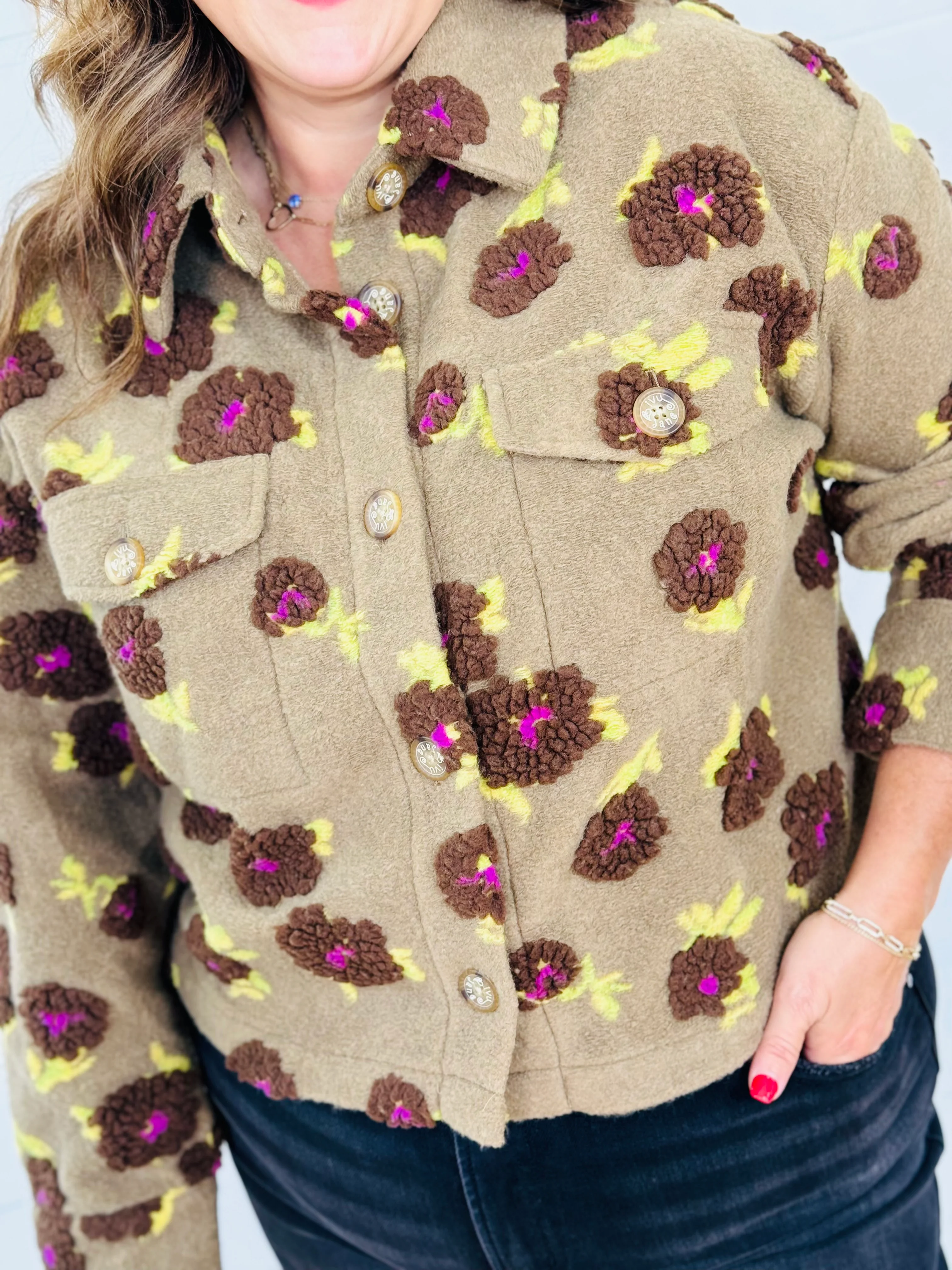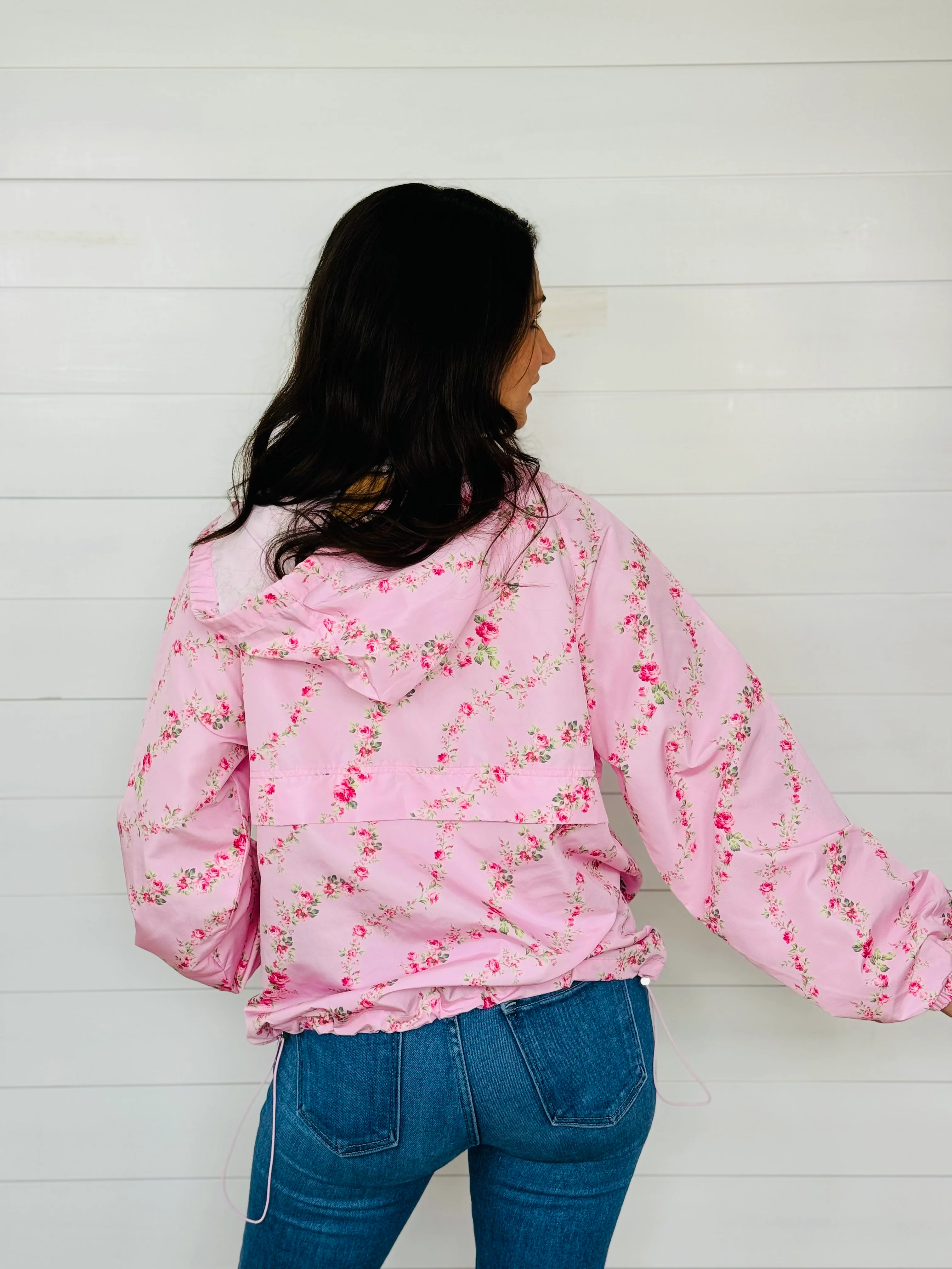 PUFF FLORAL BARN JACKET-FUCHSIA