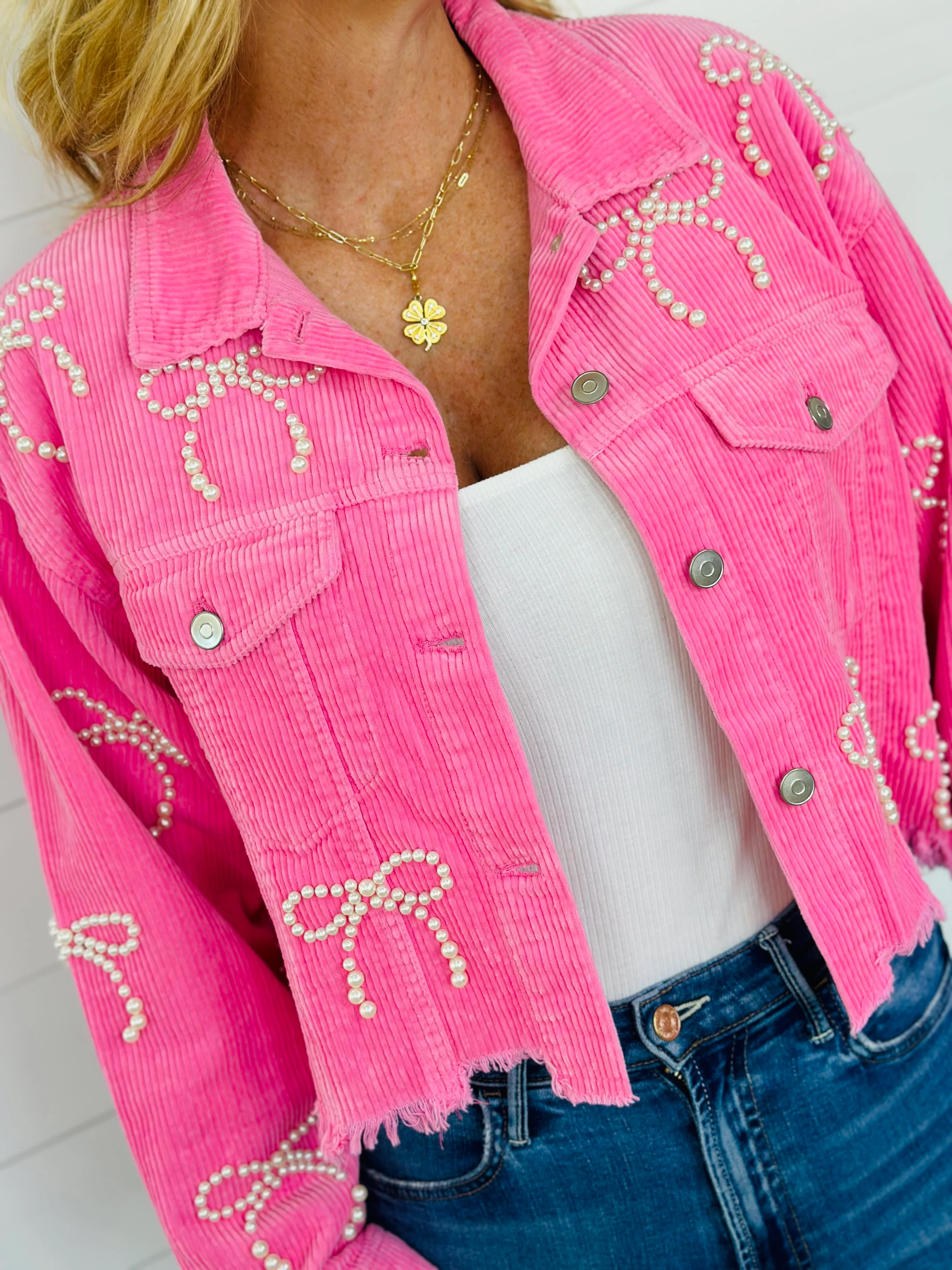 PEARL BOW JACKET-PINK