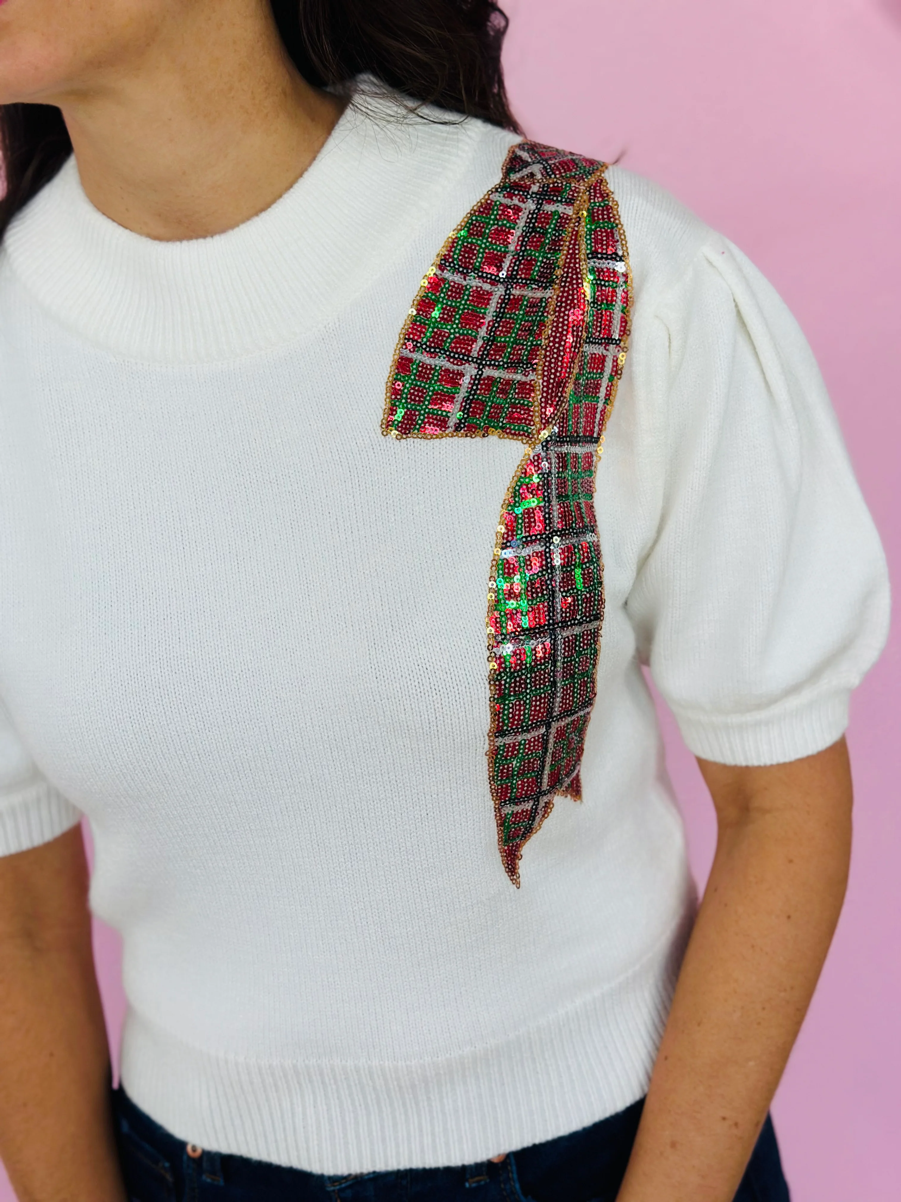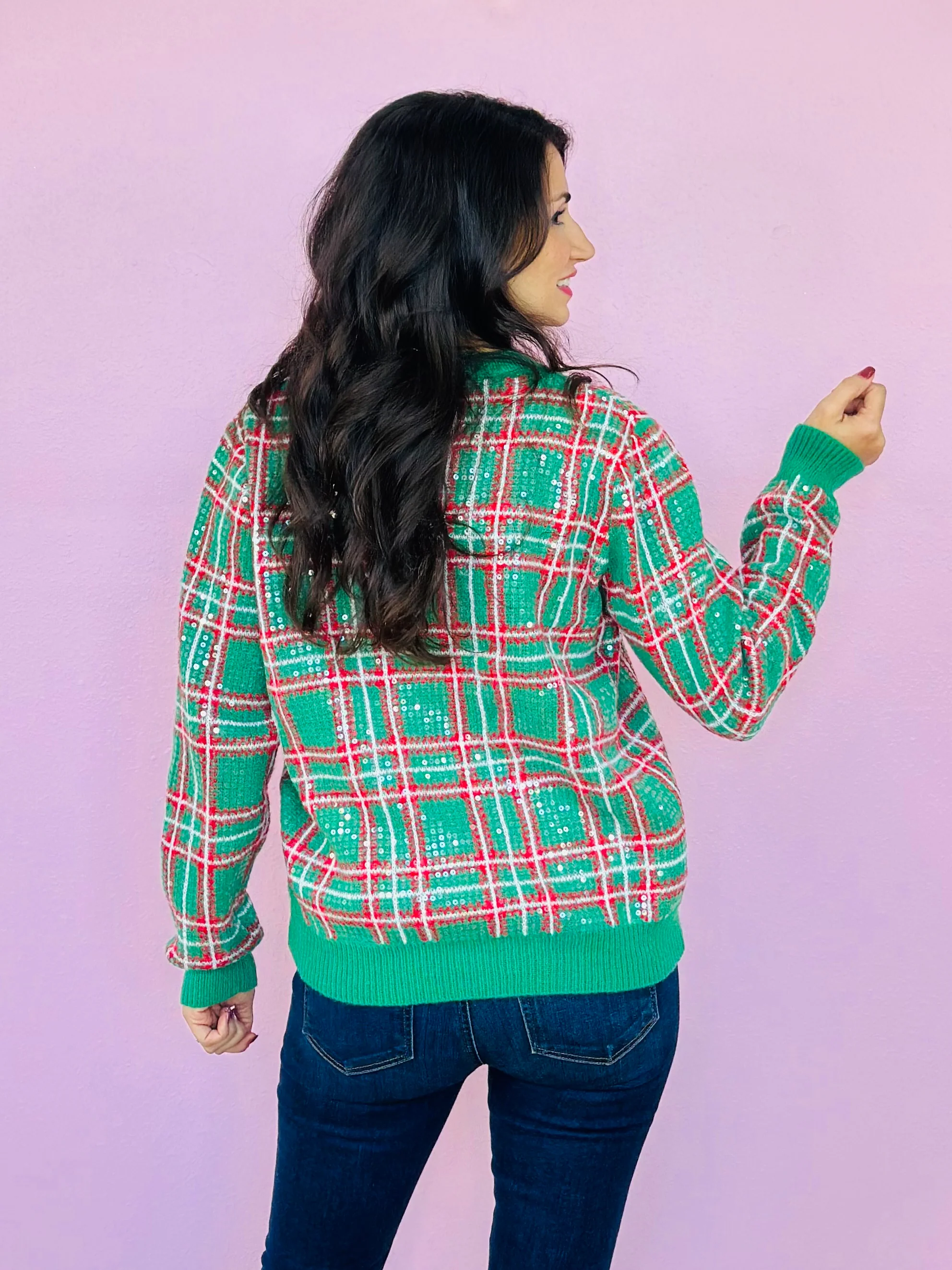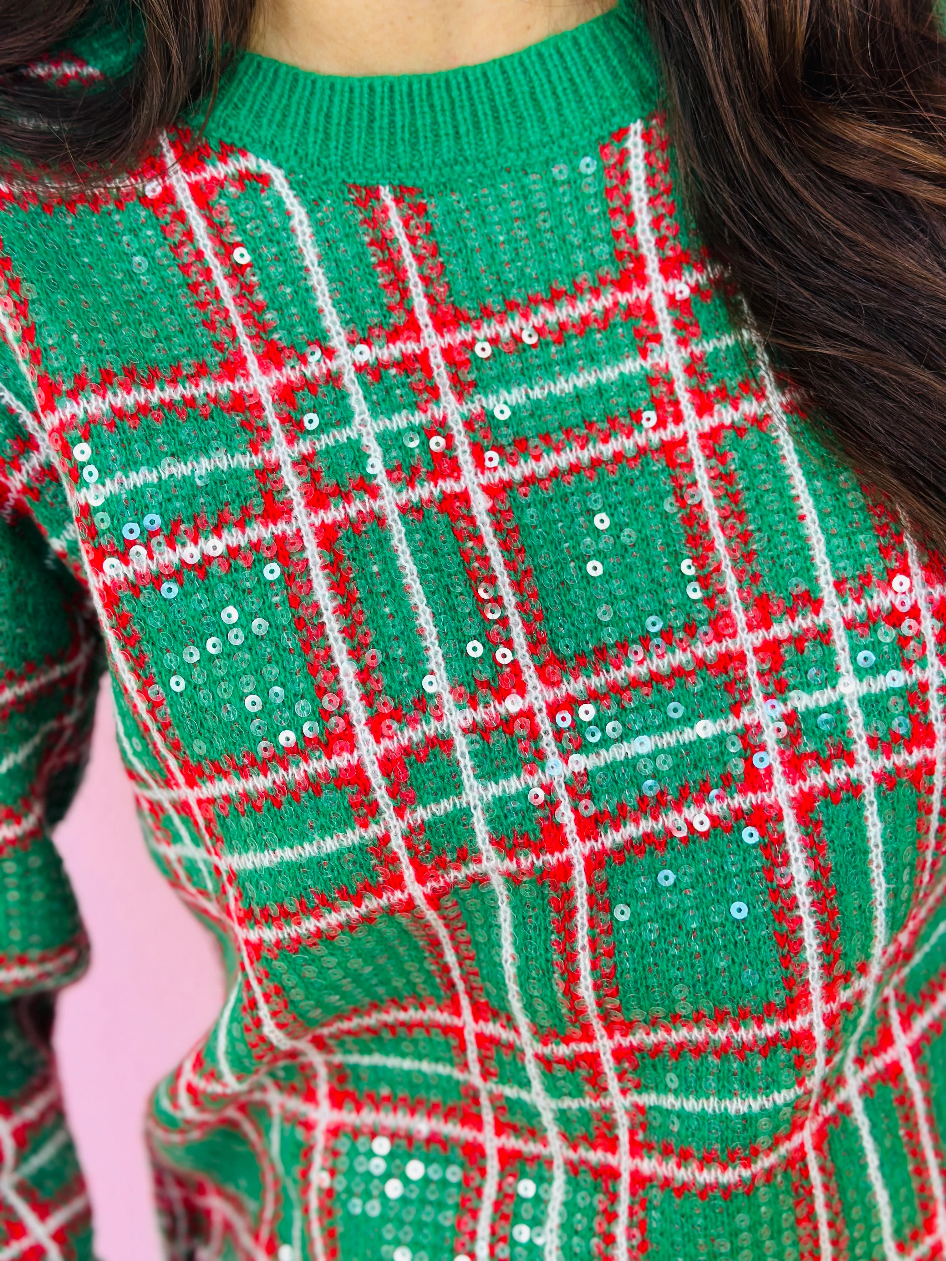 CHRISTMAS PLAID SEQUINED TOP-GREEN