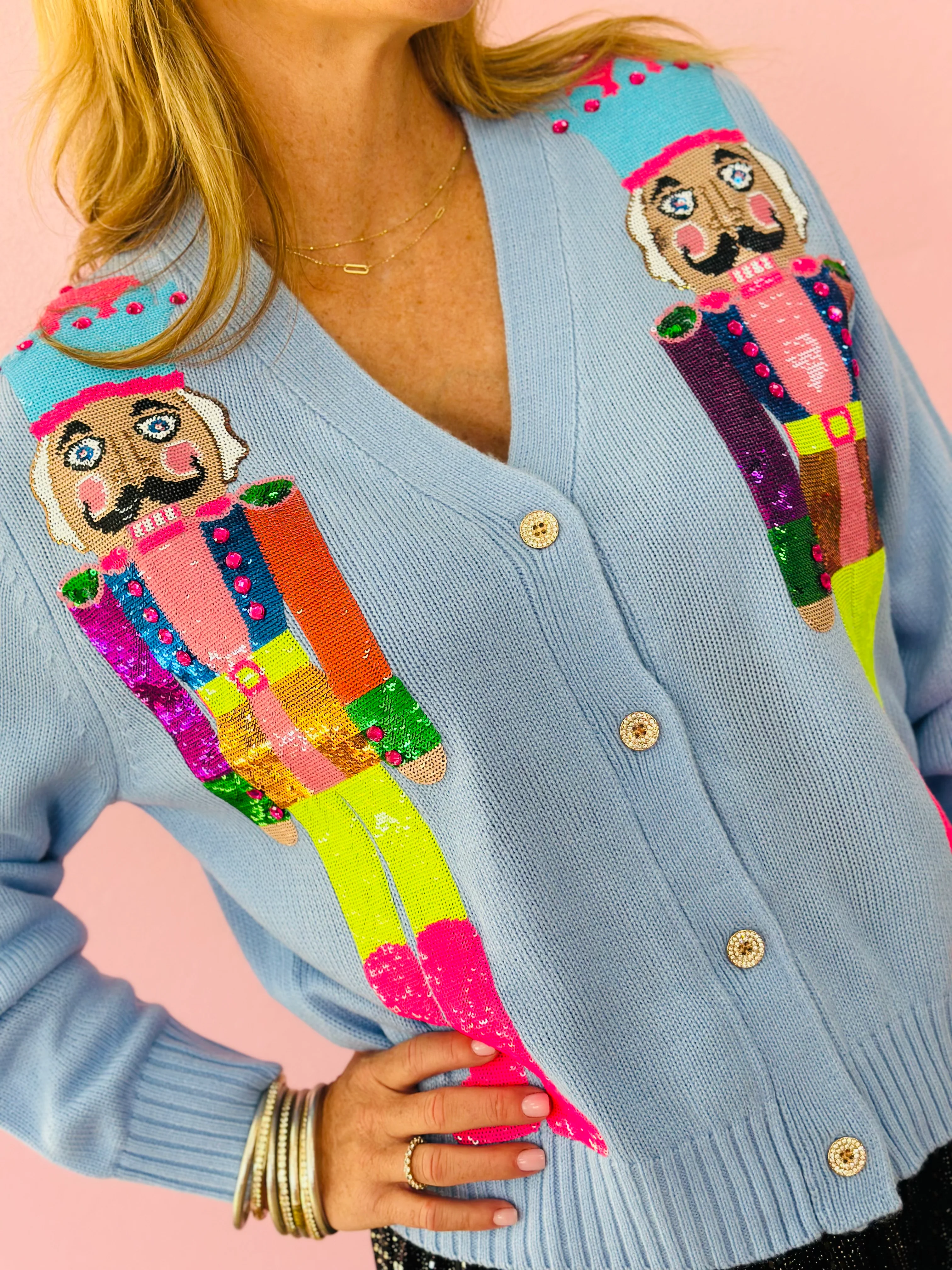 POWDER BLUE & NEON NUTCRACKER CARDIGAN