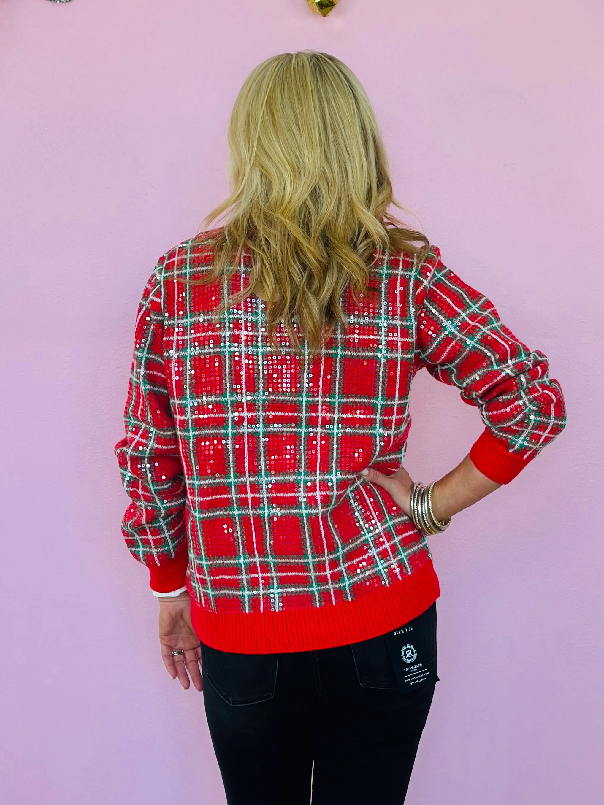 CHRISTMAS PLAID SEQUINED TOP-RED